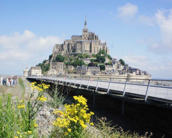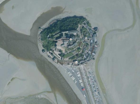 Мон-Сен-Мише́ль (фр. Mont Saint-Michel, норманд. Mont Saint Miché — гора святого Михаила) — расположен в Нормандии, департамент Манш, на острове-скале, возвышающейся над средним уровнем моря на 78,8 метра, и резко выделяется на фоне окружающего его пространства бухты и плоского берега.