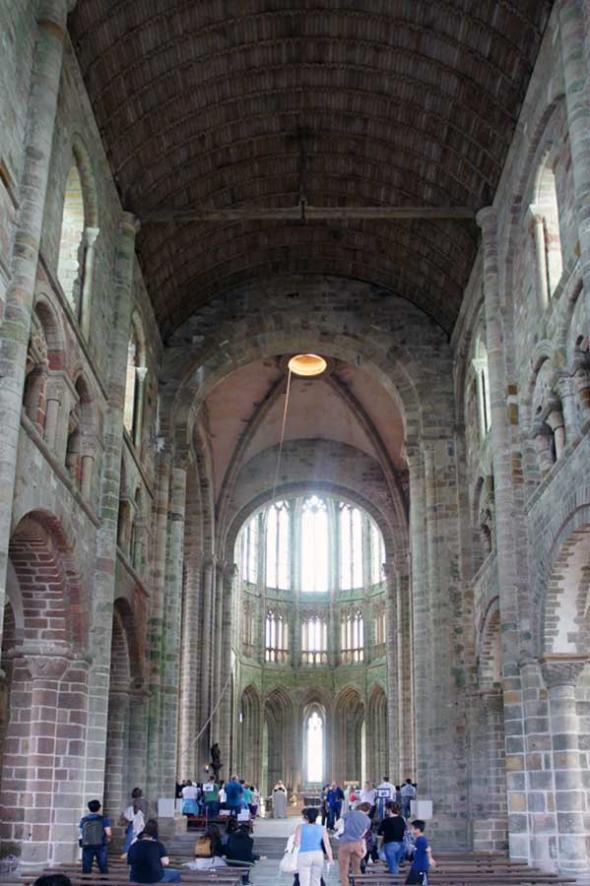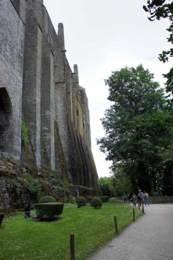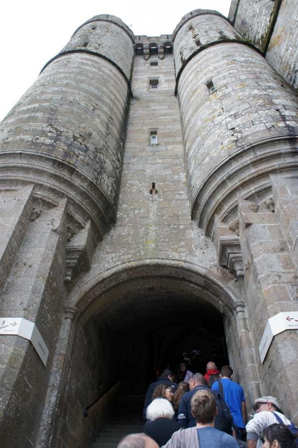 Самая большая в Европе высота прилива (до 14 метров), высокая скорость приливной волны и зыбучие пески дна, совместно с крутизной скалы в течение веков создавали благоприятные условия для уединения и его защиты от нападения неприятеля.
