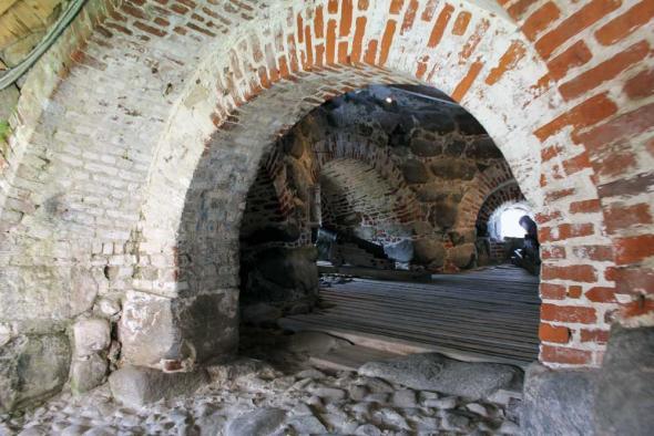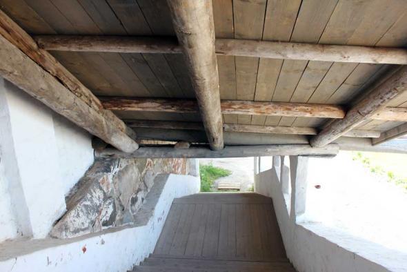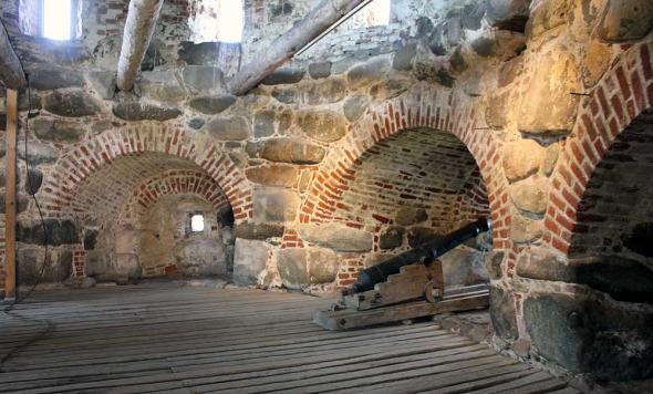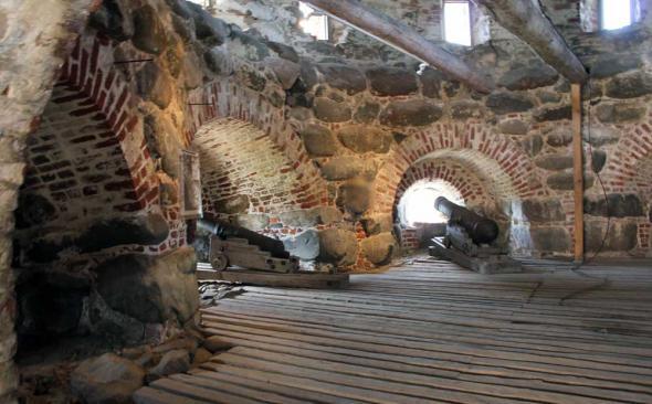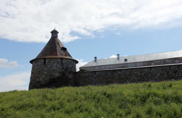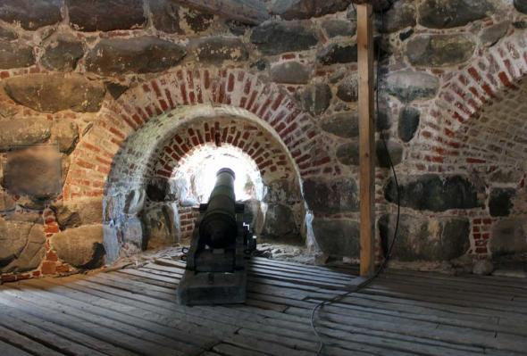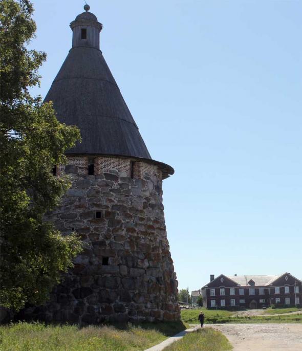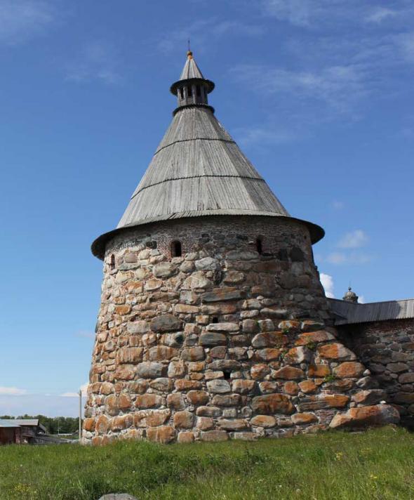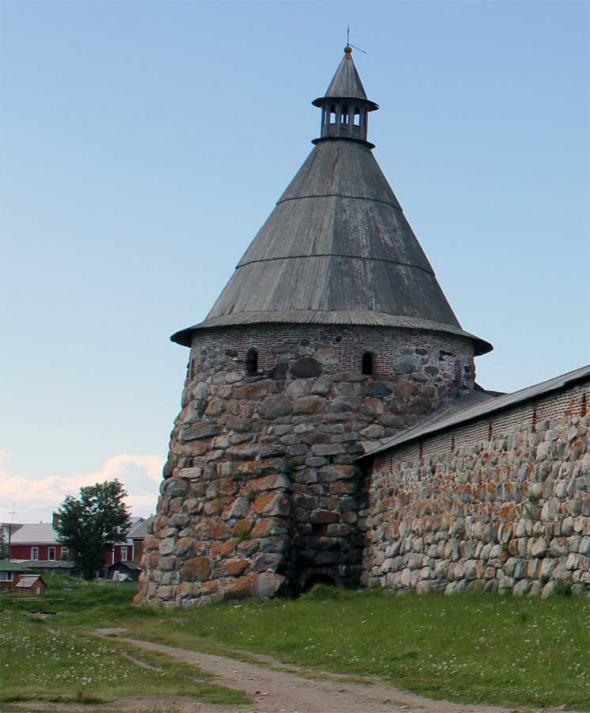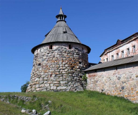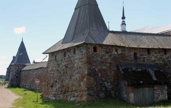 “Подошвенного боя” (боевых амбразур немного выше уровня земли) стена Соловецкого Кремля лишена. Арочные ниши, сделанные на ряде участков стены изнутри Кремля,— почти все глухие; они имели не боевое, а хозяйственное назначение.